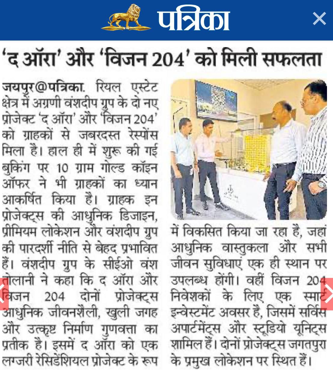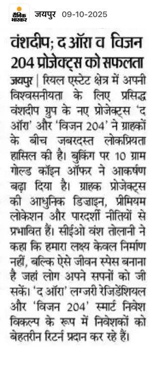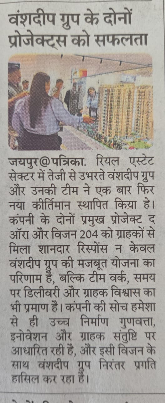 "Since 2013, Vanshdeep has been committed to delivering high-quality projects marked by timely possession, innovative design, and meticulous planning. Recognized among the top real estate developers in Jaipur, we take pride in setting benchmarks through thoughtfully executed developments that balance aesthetic excellence with functional integrity."